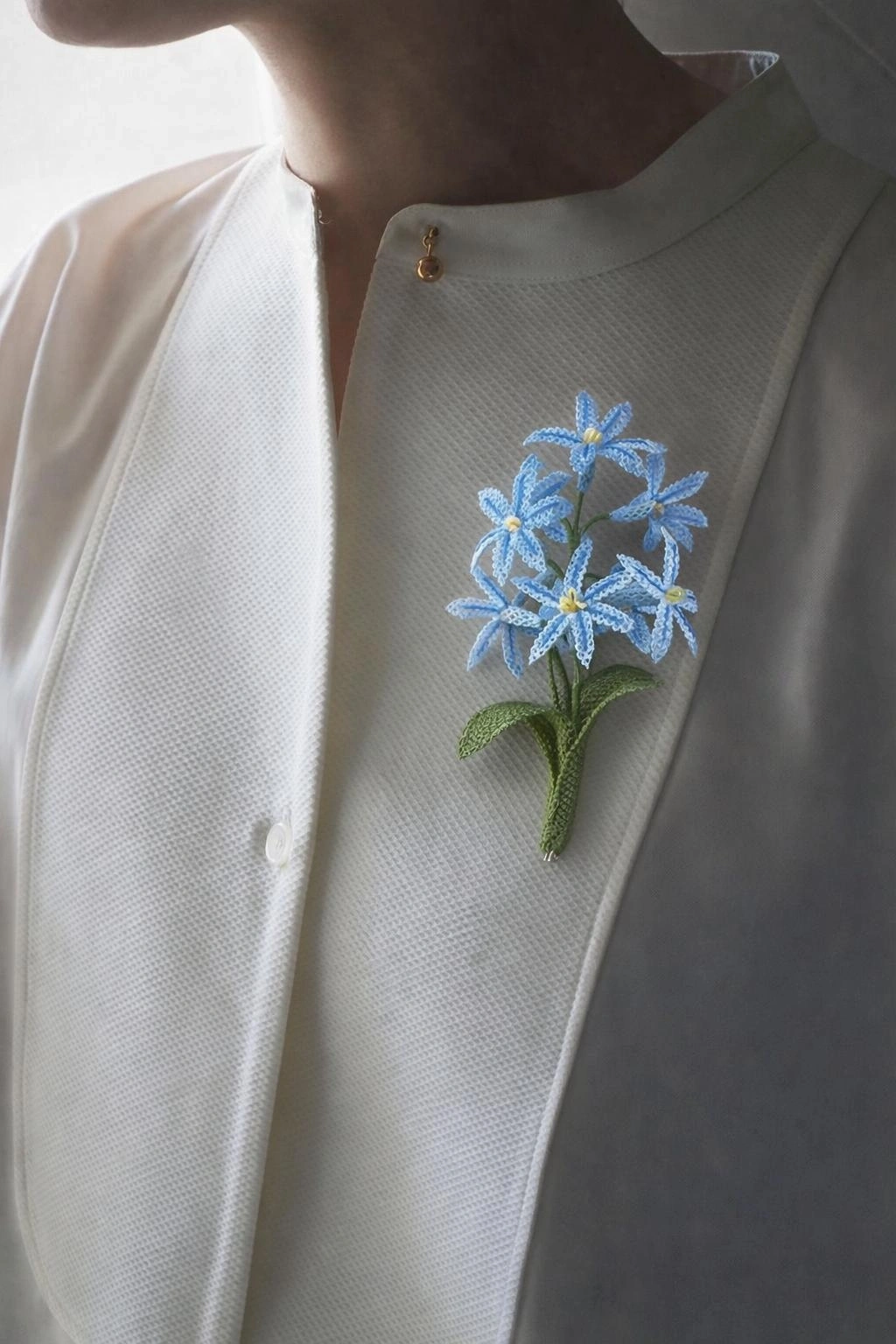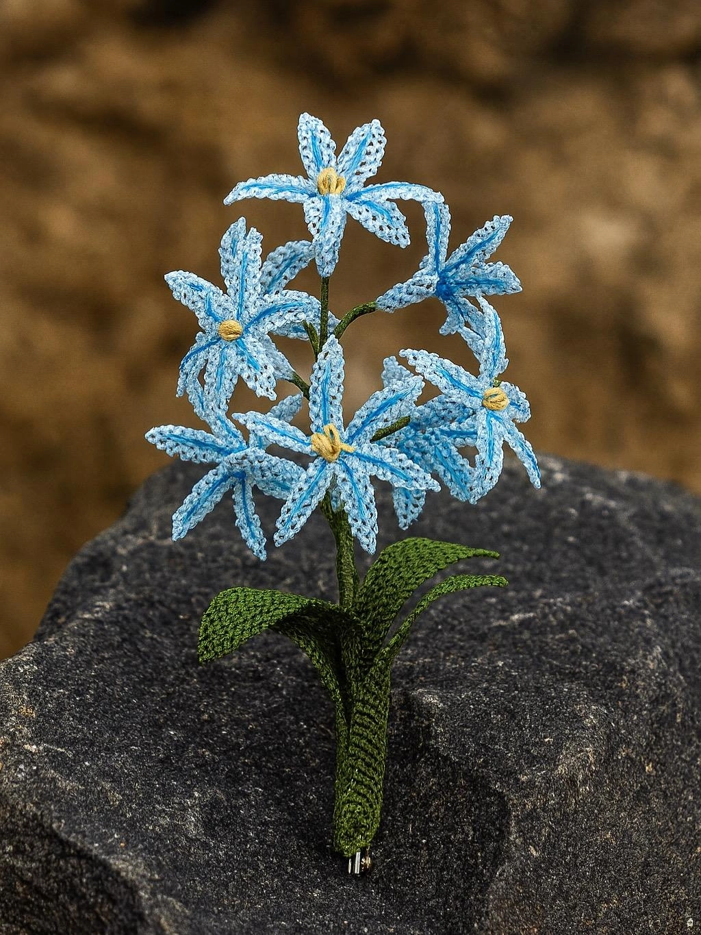 Ürün Özellikleri : Mavi rengi suni ipek iplik ile sümbül, yeşil renk ile dal ve yaprak iğne oyası tekniği ile işlenmiştir. Sümbül çiçeği, dal, yaprak bir araya getirilerek broş tasarlanmıştır.