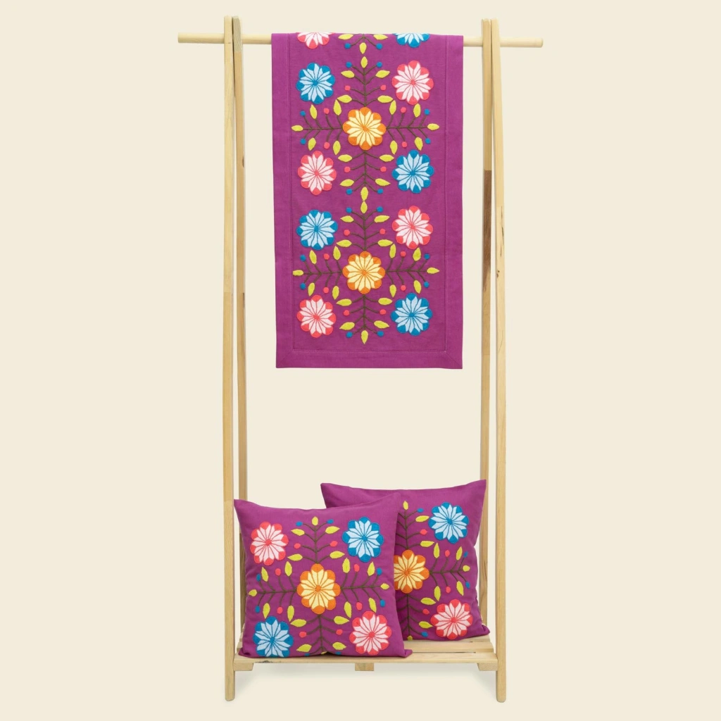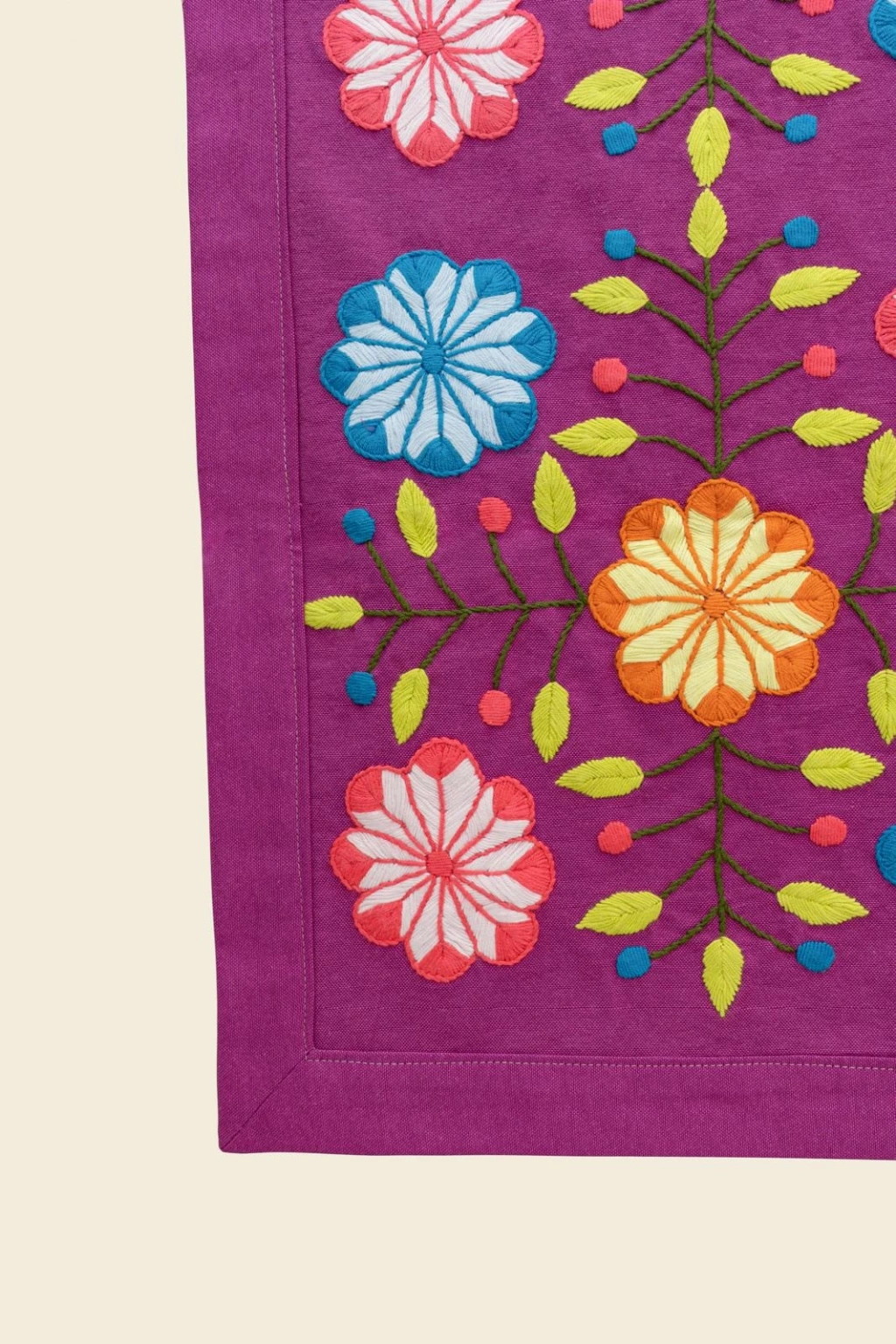Ürün Özellikleri : Duck kumaş üzerine özel tasarım olan runner pamuklu ipliklerle meksika nakışı teknikleri ile işlenmiştir.