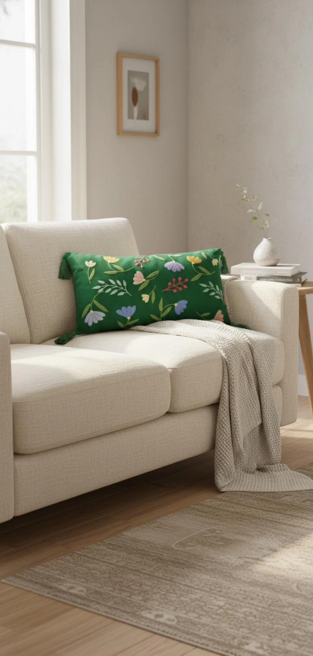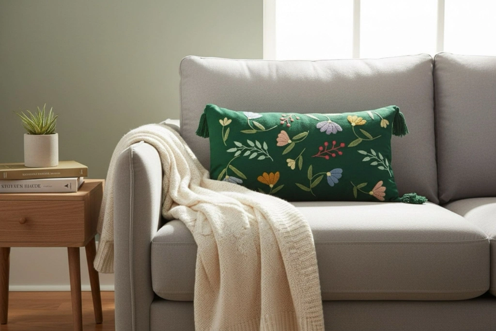 Ürün Özellikleri : Duck kumaş üzerine pamuklu ipliklerle meksika nakışı işlenmiştir. Kırlent köşelerine püskül dikilmiştir.