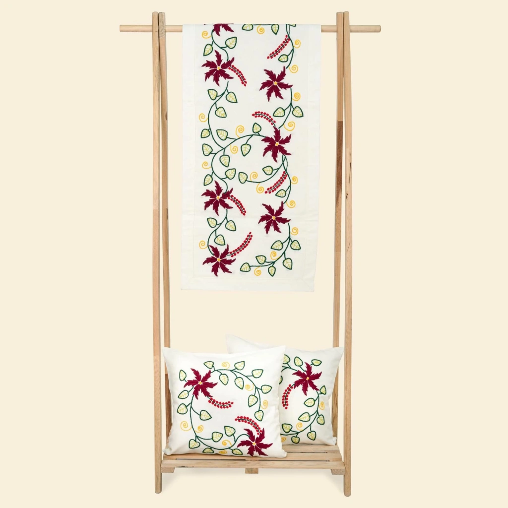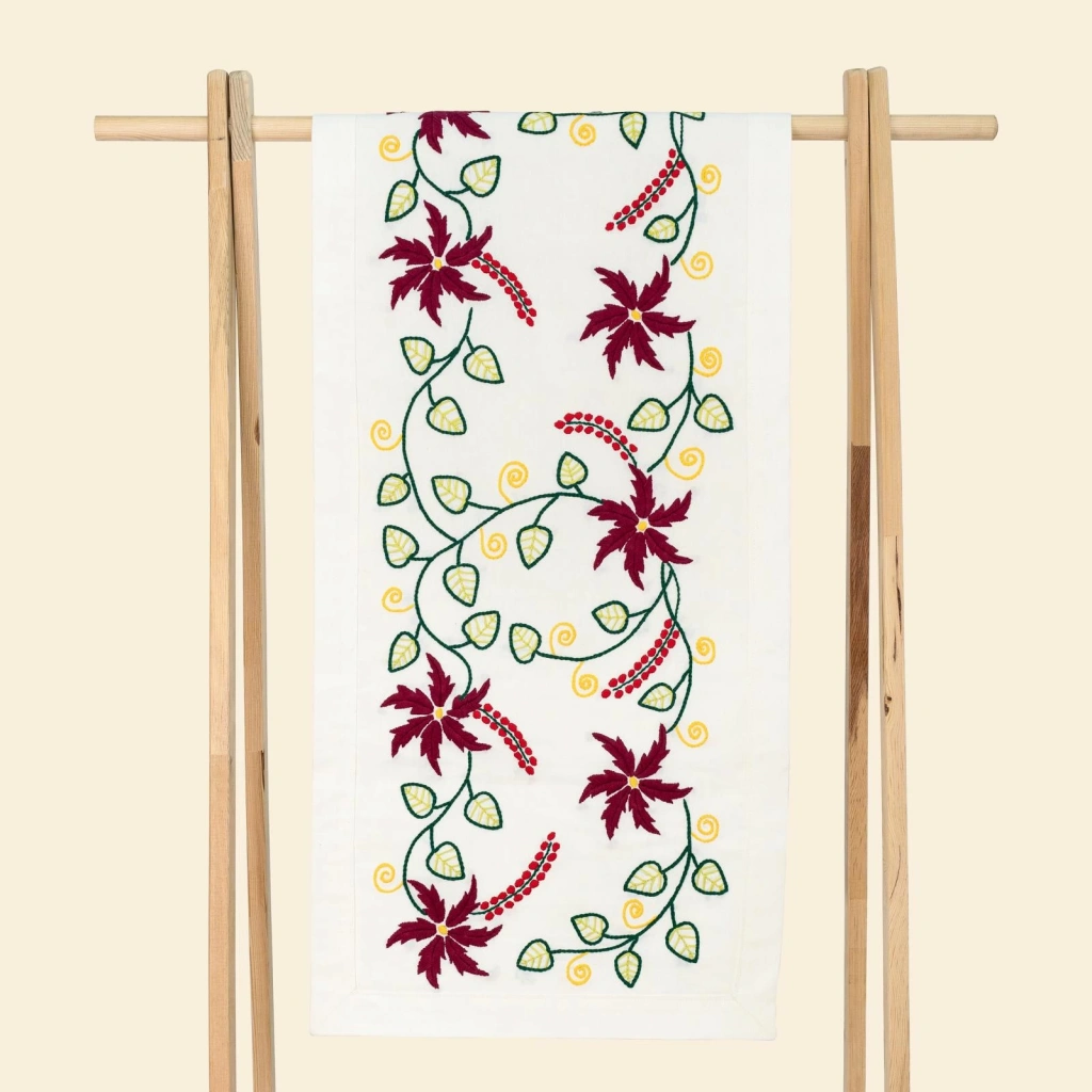 Ürün Özellikleri : Duck kumaş üzerine özel tasarım olan runner pamuklu ipliklerle meksika nakışı teknikleri ile işlenmiştir.