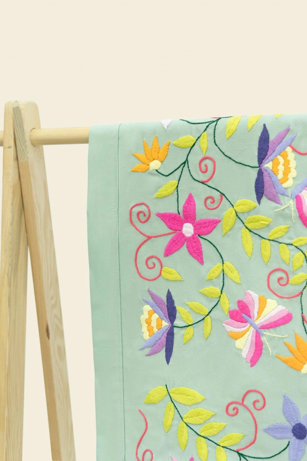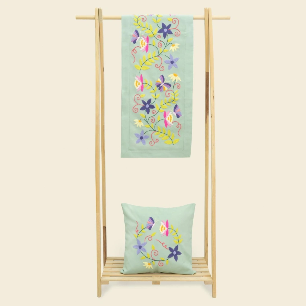 Ürün Özellikleri : Duck kumaş üzerine özel tasarım olan runner pamuklu ipliklerle meksika nakışı teknikleri ile işlenmiştir.