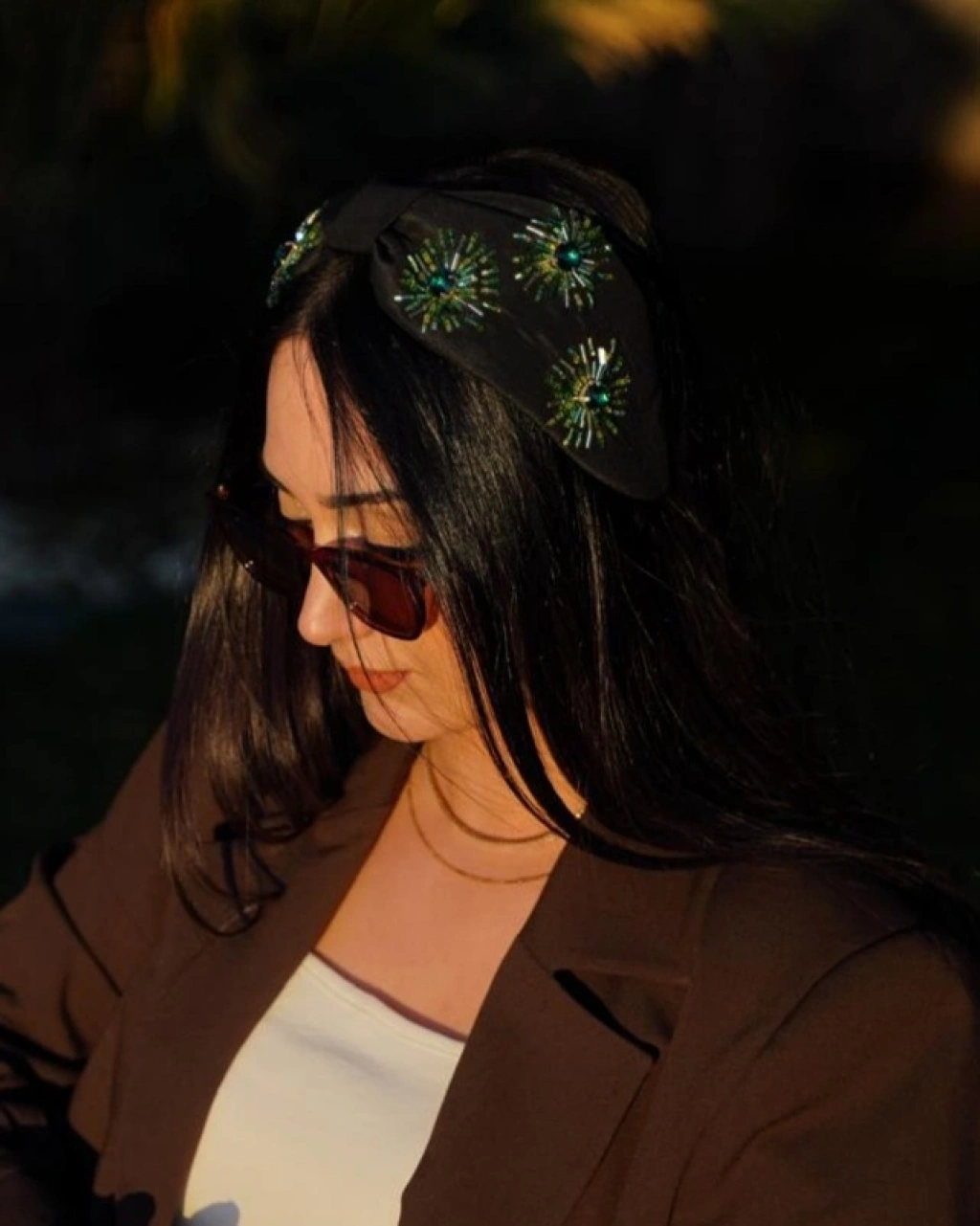 Ürün Özellikleri : Siyah kumaş üzerine desen yeşil renkte kesme, boru ve kristal boncuklarla işlenmiştir.